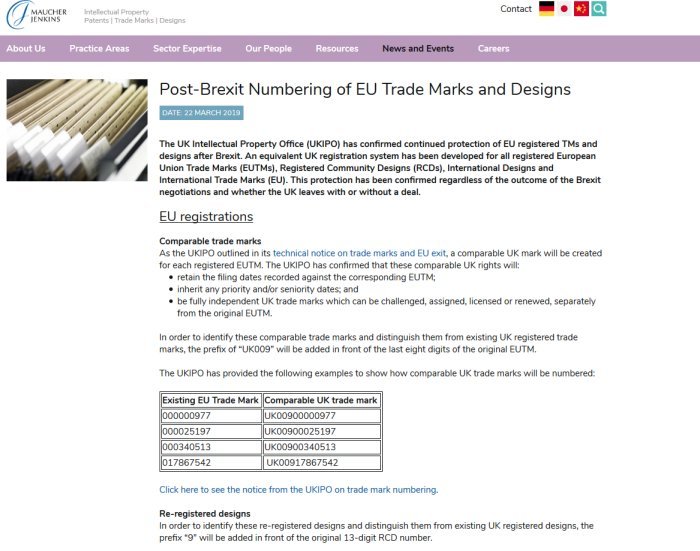 Weitere Informationen zur Nummerierung der neuen UK Marken in der Praxis bei der Kanzlei Maucher Jenkins