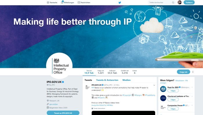 Twitter Kanal des UK IPO und Kombinationsrecherche