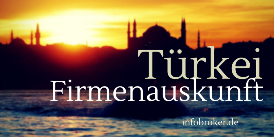 Mit einer einfachen und schnellen Bestellung erhalten Sie Auskunftsdaten zu türkischen Unternehmen mit aktuell vor Ort recherchierten Daten. Die Informationen werden aus dem türkischen Register und weiteren Quellen zusammengestellt. Für die Nutzung der Auskunftsdienste ist keinerlei Mindestabnahme oder Mitgliedschaft notwendig.