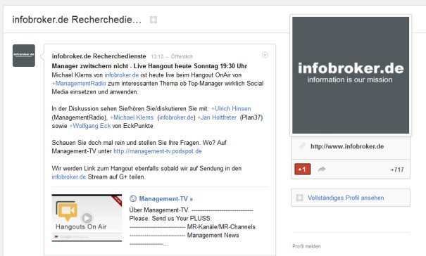 Gemeinsam mit ManagementRadio haben wir den Hangout gut 14 Tage geplant und verschiedene kleinere Tests vorab durchgeführt. So müsste es heute Abend vollkommen problemlos klappen.