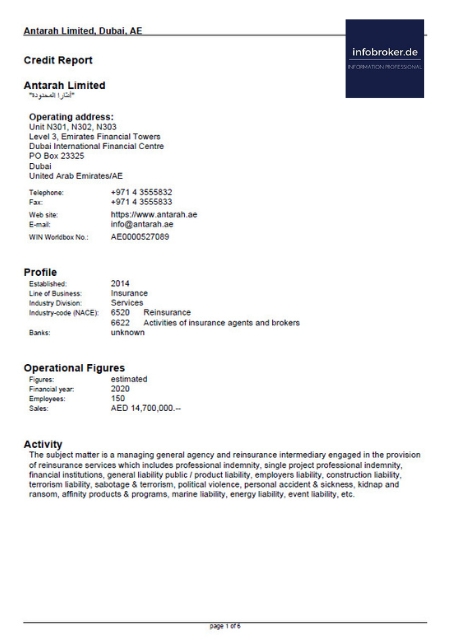 Aktuelle Vor-Ort Wirtschaftsauskunft zu einem Unternehmen in Bahrain. Lieferung der Auskunft per E-Mail.