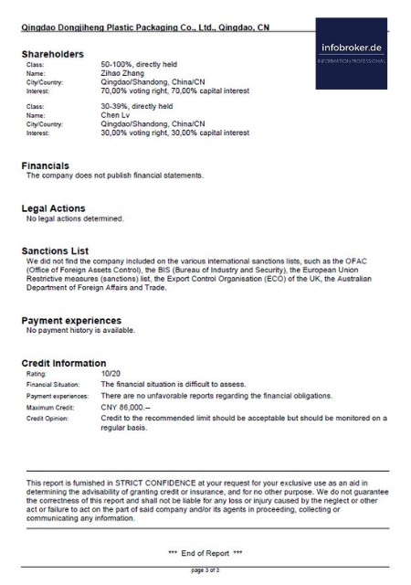 Alle Firmenauskünfte werden von unseren lokalen Partnern recherchiert und zusammengestellt. Dabei werden offizielle Handelsregister sowie zusätzliche Quellen vor Ort geprüft. So stellen wir sicher, dass die Informationen zum Zeitpunkt der Lieferung so aktuell und zuverlässig wie möglich sind.