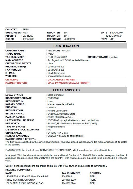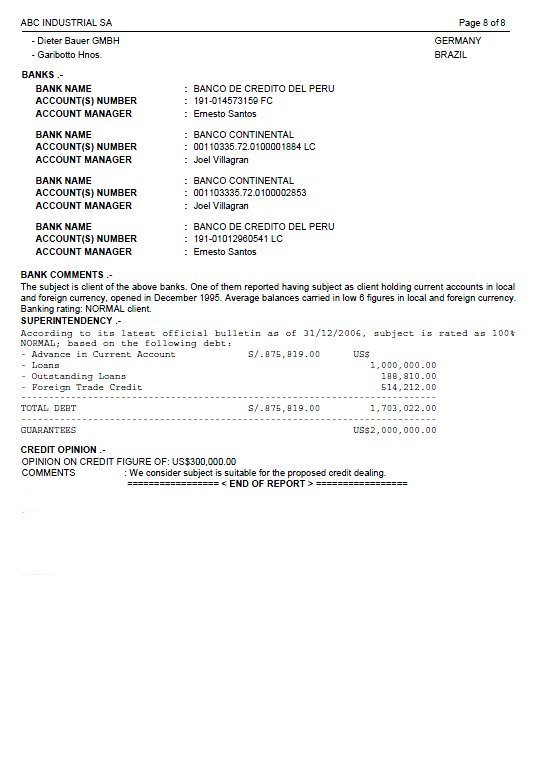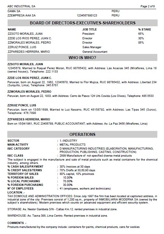 Aktuelle Vor-Ort Wirtschaftsauskunft zu einem bolivianischen Unternehmen. Lieferung der Auskunft per E-Mail.