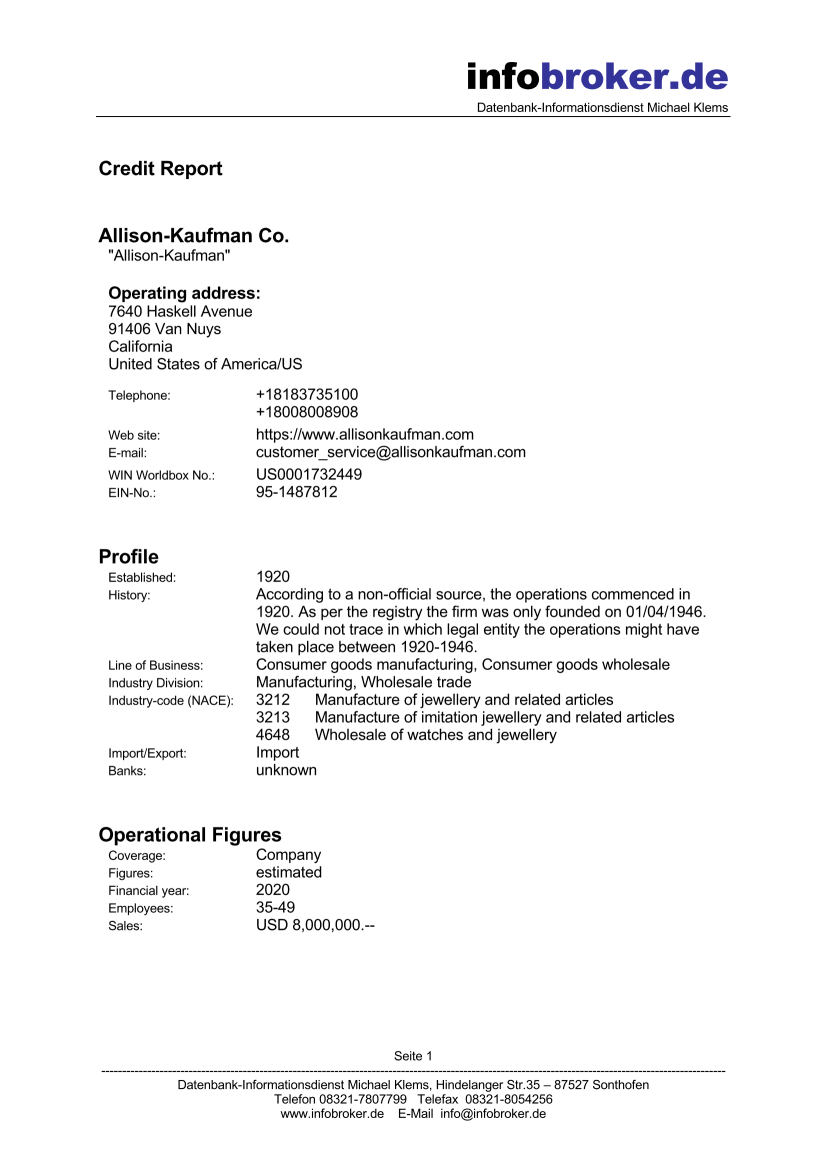 Wir bemühen uns um die vollständige Bereitstellung dieser Daten. Abhängig von den jeweiligen Registern können bestimmte Informationen wie Gesellschafter, Bankdaten, Mitarbeiterzahlen, Umsätze oder Finanzdaten nicht verfügbar sein.