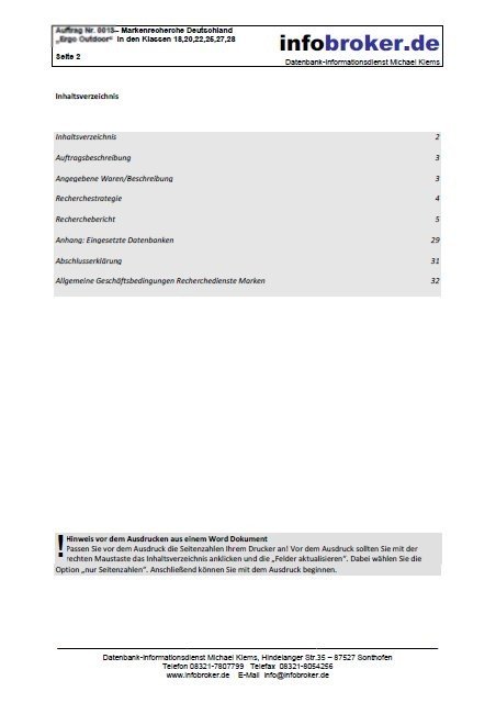 - Ausführlicher Recherchebericht per E-Mail (Word und PDF Ausdruck)